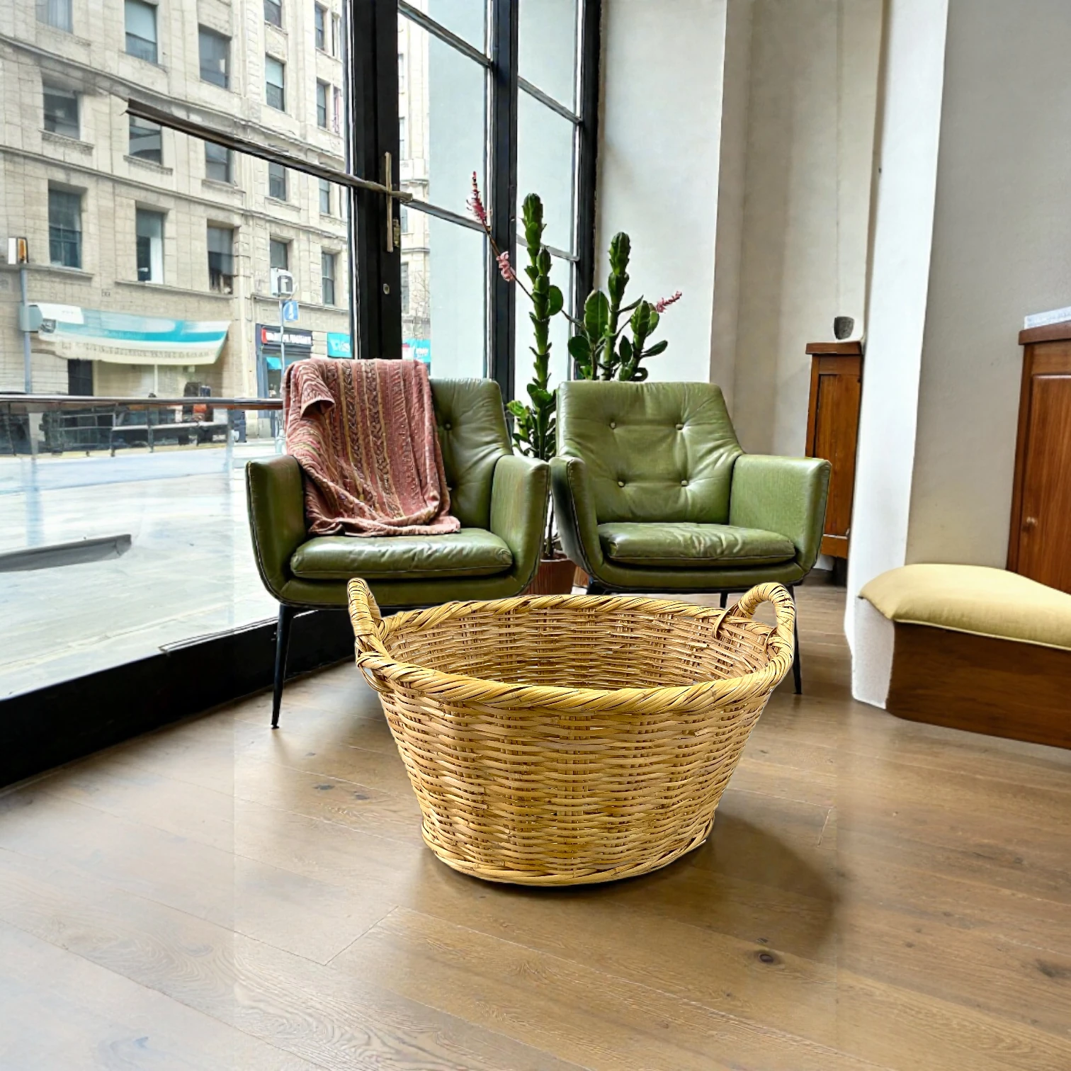 Kurven er ideel til opbevaring af tæpper, plaider, vasketøj eller legetøj og fungerer både som praktisk opbevaringsløsning og dekorativt element i hjemmet. Da kurven er håndlavet, kan der forekomme små variationer i form og finish, hvilket understreger det unikke håndværk.